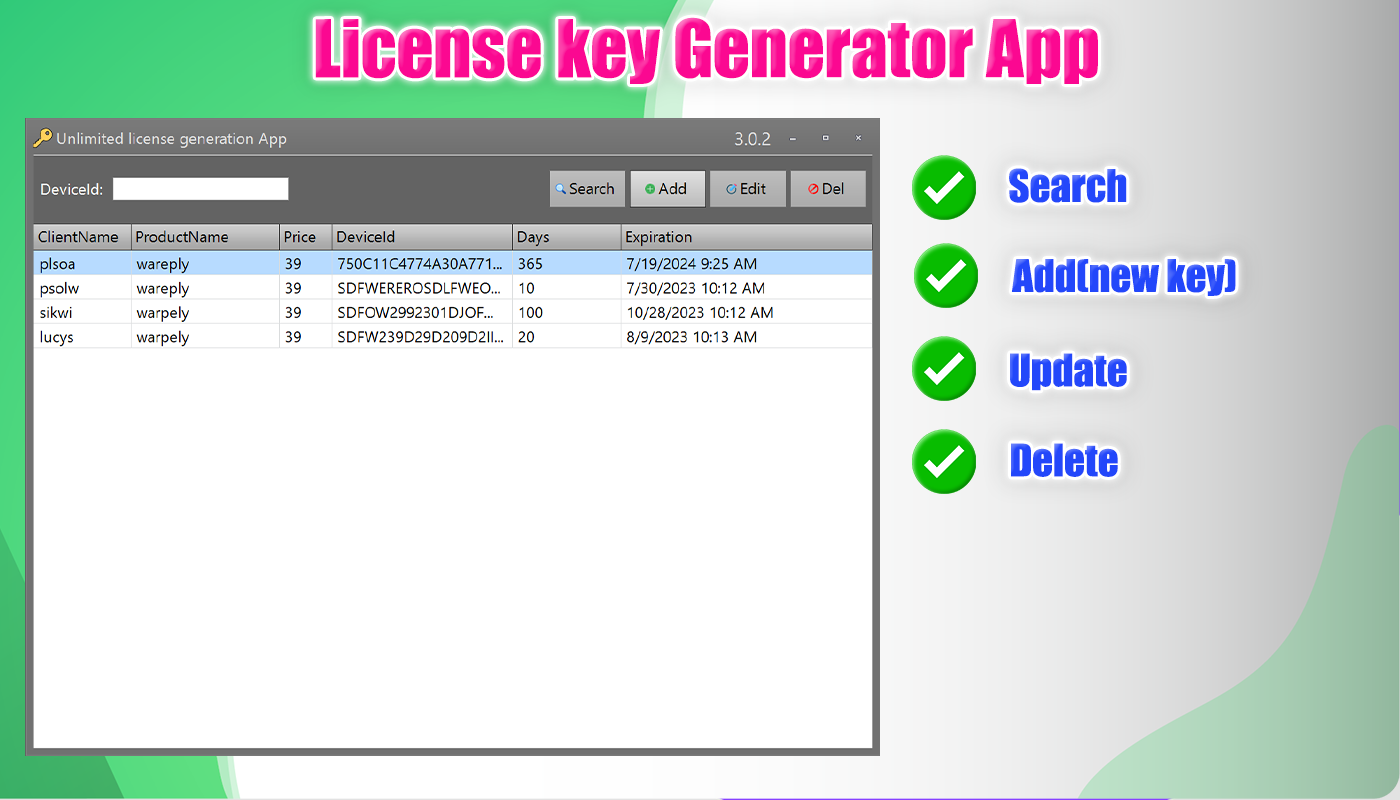 “Unlimited License Key Generator App” you can sell unlimitedly to any customer.