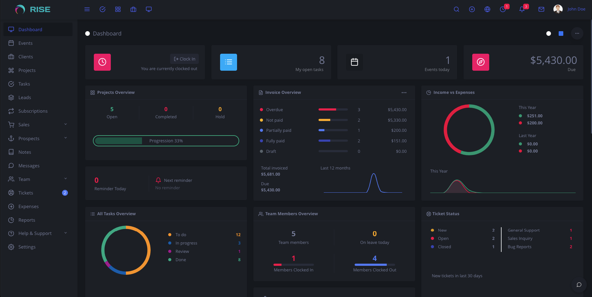 RISE is excellent project management and CRM software to enhance productivity and customer satisfaction. You can easily manage your projects, sales, clients, team and many more in the same place. It includes everything to run your business effectively!