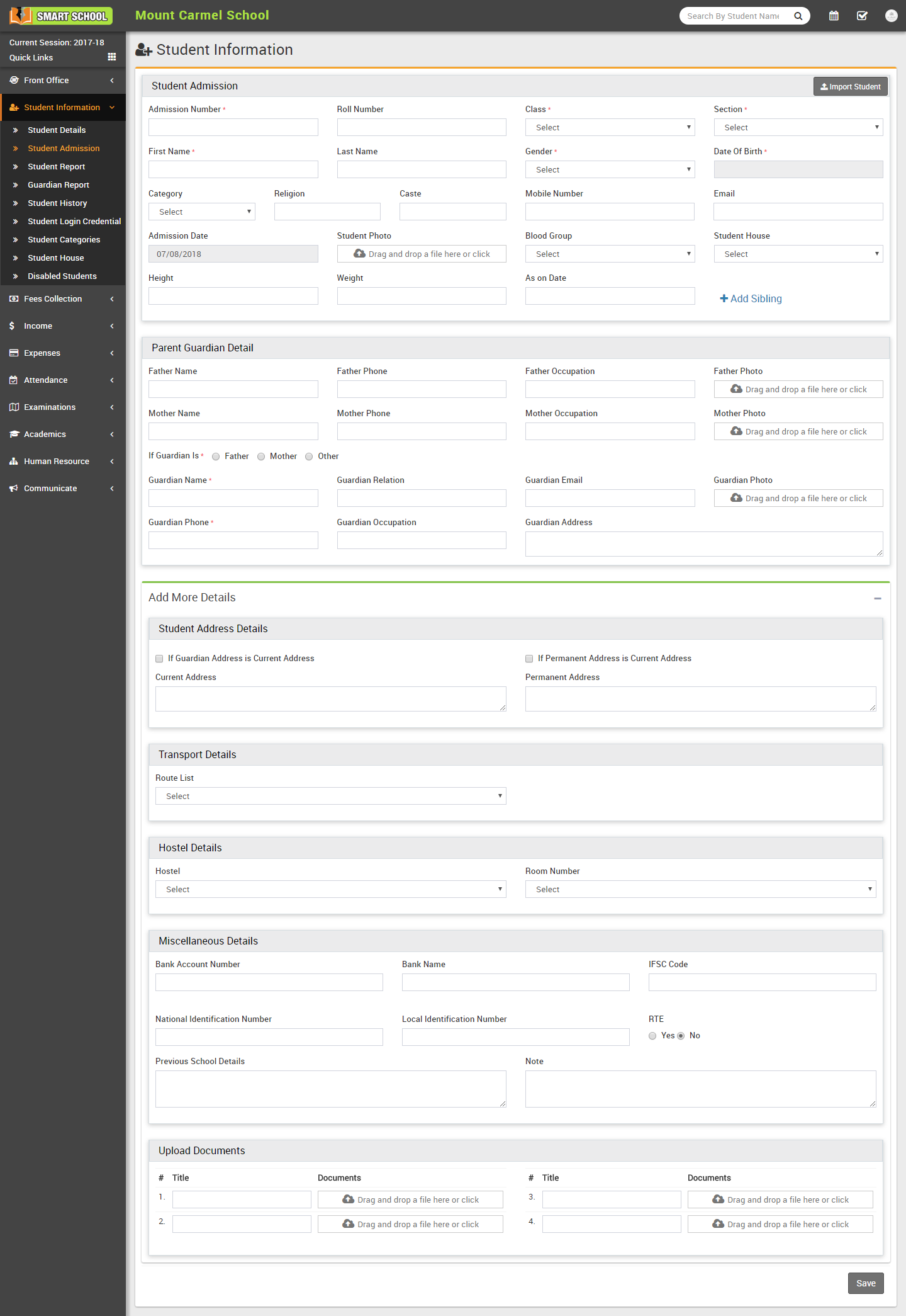 Smart School is Modern and Complete School Automation Software that suites to almost every school or educational institution from student admission to student leaving, from fees collection to exam results. It includes 40+ modules with 8 inbuilt users (Super Admin, Admin, Accountant, Teacher, Receptionist, Librarian, Parent and Student) panel.