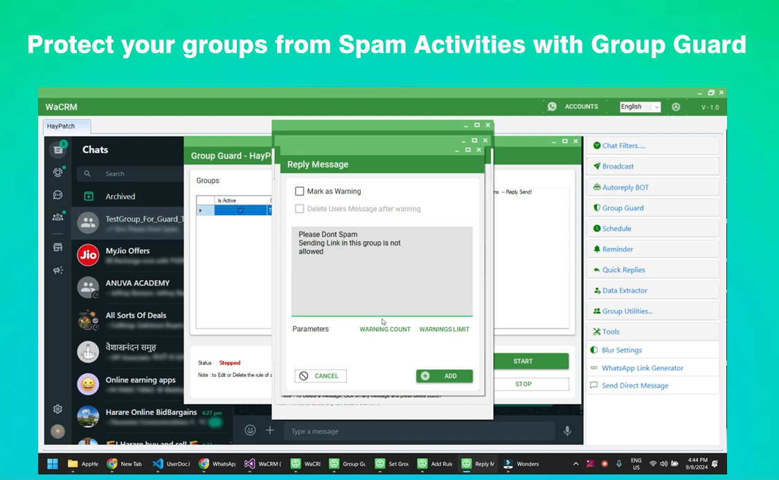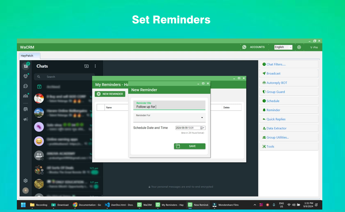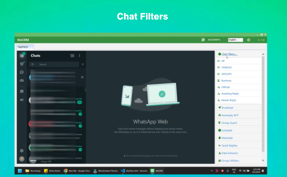 WaCRM be your most powerful assistant for your Business marketing and sales via WhatsApp Web.