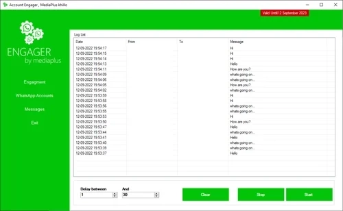 Step 3: Customize the time delay between messages, selecting intervals that suit your preferences (e.g., 5 to 20 seconds or 10 to 30 seconds). Then, click the “Start” button to activate the Engager.